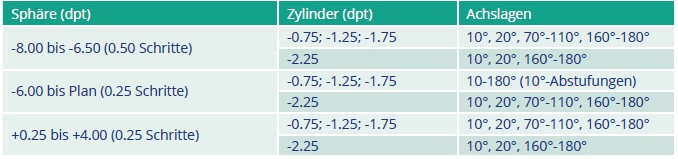 - lieferbare Werte: 0,00 dpt bis -6,00 dpt
